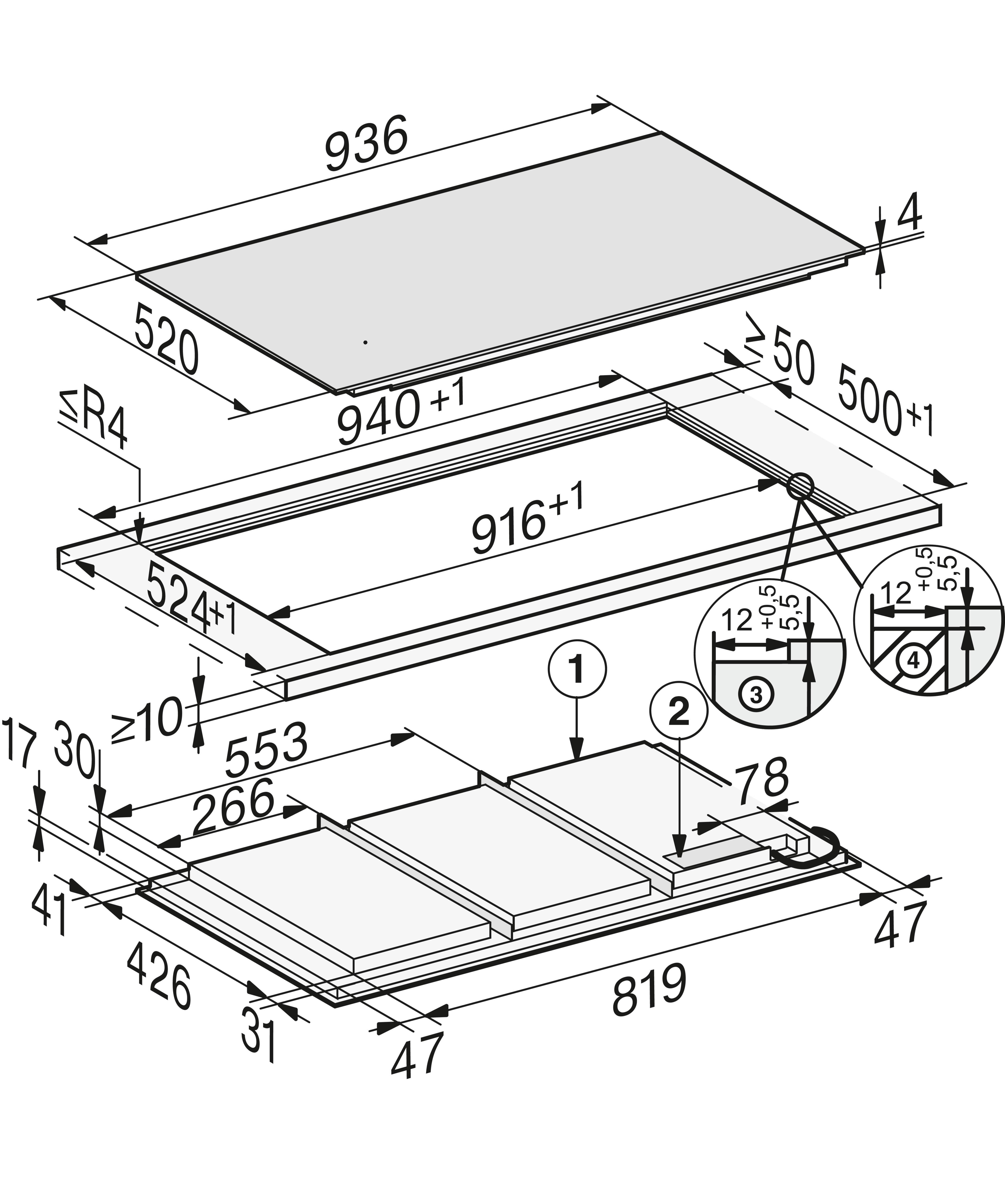 Внешние размеры выреза в мм (ширина) для встраивания заподлицо